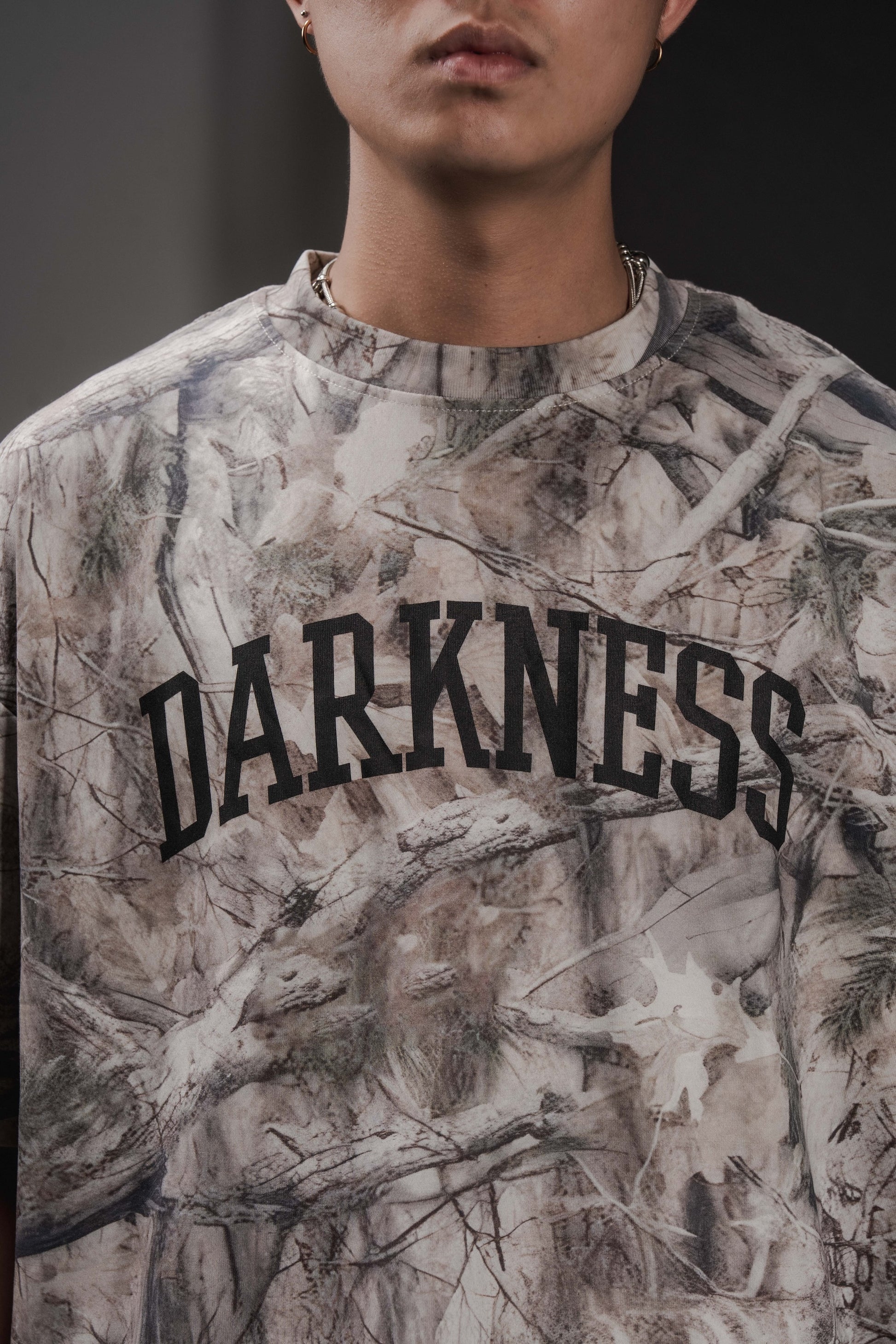 Blackout Camo Tee is designed for comfort, durability, and everyday movement. The structured cut with a subtle drop-shoulder silhouette enhances the upper body while maintaining a relaxed fit. Finished with silkscreen-printed DARKNESS logos on the front and back, clean and controlled.